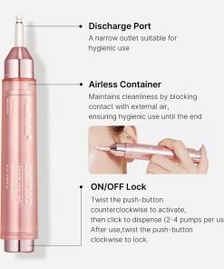 - Apply a generous amount morning and night on clean, dry skin. Open thecap and twist the push-button counterclockwise to activate, then clickto dispense(2-4 pumps per use). Gently press serum onto face, neck anddécolleté. After use, close the cap and twist the push-button clockwiseto lock.