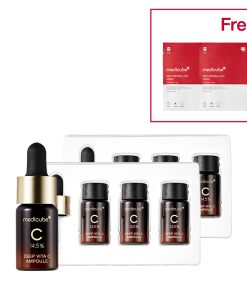 *Deep Vita C Ampoule consists of 3 bottles per product. What it is Deep Vita C Ampoule helps reduce the appearance of hyperpigmentation and brown spots, even out skin tone, and enhance skin radiance by inhibiting melanin production. Formulated with 14.5% vitamin C, this water based, hypoallergenic certified ampoule is the ultimate elixir to even out skin tone and boost skin elasticity. Illuminate your skin in 7 days | 12 clinical trial completed | Cruelty free formula. What is special Packed in a 3-shielding compact bottle and developed through two tier stability technology, the efficacy of Vitamin C (ascorbic acid) is maximized to its fullest. Who needs it: People with dull skin who want a healthy glow. For all skin types that want to reduce the appearance of blemish/freckles and tighten skin. Weight: 10g x 3ea (30g)