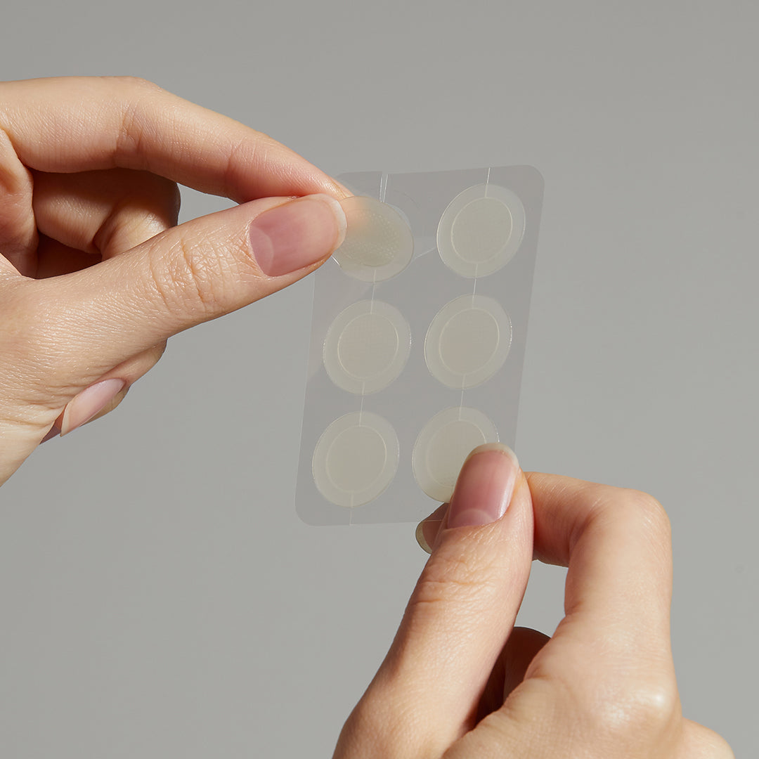 1. Peel off the film, trying not to touch the microtips in the center of the patch. 2. Place the patch with the troubled area at the center and gently place and press firmly with your fingers to effectively adhere. *Check before use Be careful that the tip is made of 100% active ingredients and may melt on skin with unabsorbed skincare and water.