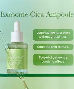 - EXOSOME CICA: Medicube’s Exosome Cica is developed in a nano size that is 1/510 smaller than pores, delivering 5.3 times more powerful skin texture improvement and soothing effects than traditional Cica.