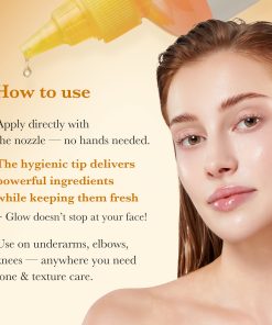 - Apply directly with the nozzle — no hands needed. The hygienic tip delivers powerful ingredients while keeping them fresh. Easy and effective to use on underarms, elbows, knees, or anywhere you want skin tone and texture visibly improved.