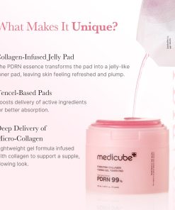Bouncy Collagen Gel Pads boost the delivery of ultra-low molecular collagen (200Da), which penetrates deep into the skin to help restore elasticity.Gentle yet effective formula that delivers lasting hydration and natural glow, targeting uneven skin tone & dark spot