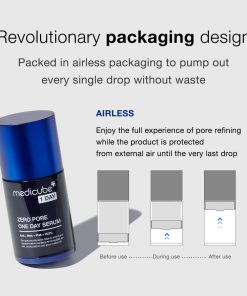 What is Zero Pore One-day Serum?Overnight resurfacing serum, formulated with 15.2% AHA + BHA + PHA Pore minimizing complex with all-in-one pore care solution (High efficacy, low irritation)> AHA 1% – 3 types of AHA combined for surface exfoliation> BHA 0.2% – Salicylic acid exfoliates deeply into pores> PHA 14% – A new generation of AHA, gentle peeling for sensitive skin Why medicube’s Zero Pore One-day Serum?Deals with all types of pores with different solutions1) O-shaped poresCaused by excess sebum & blackheads